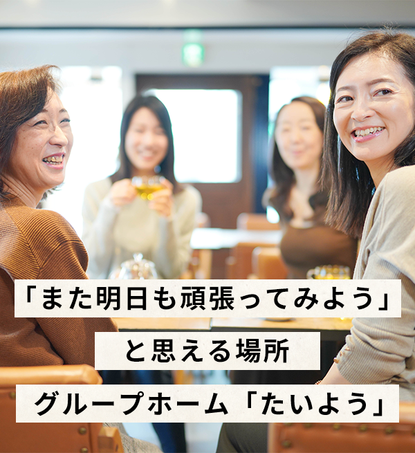 グループホームたいようでは、主に精神障がいによって自立した生活が困難になった方に対して少人数での共同生活をしていただき家庭的な環境の下、精神症状の緩和や悪化防止を図り、自立した生活を営めるようにお世話させていただきます。